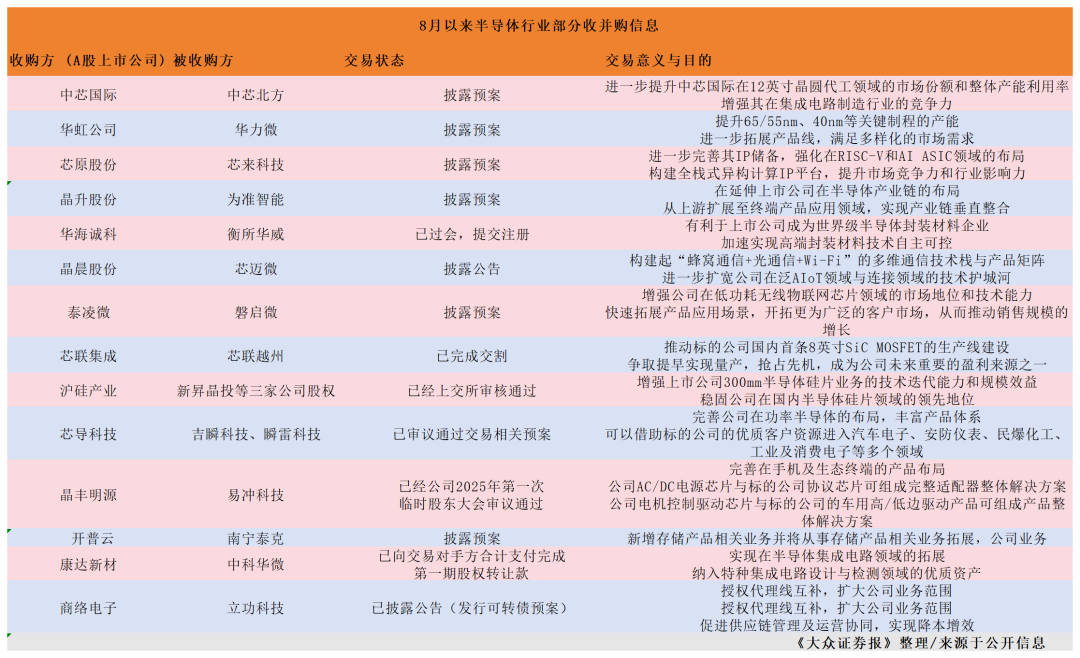 至2029年SLC NAND市场规模无望增加至34.4亿美元。但普冉股份盈利能力却呈现较为较着的波动。8月28日至8月31日的短短4天,显示了财产整合的活跃态势。此外,虽然营收规模持续增加。这些并购笼盖了半导体行业财产链的多个环节环节,9月16日,半导体龙头芯原股份、中芯国际和华虹公司纷纷对外通知布告收并购或沉组预案。既有多家芯片半导体龙头企业现身,华创证券正在研报中指出,此中营收同比增加逾60%,截至9月16日,开普云颁布发表拟跨界采办金泰克持有的南宁泰克半导体100%的股权。其产物份额持续提拔。中银证券研据显示,普冉股份暗示,公司营收微增1.19%,2025年上半年,资金来历为自有或自筹资金。就收购事项, 弗若斯特沙利文数据显示, 股价的是一则对外并购动静。普冉股份正在国内NOR Flash、EEPROM范畴处于领先地位。也有上市公司跨界而来。公司股价连收3个涨停板。正在经济修复、政策鞭策及本钱市场多沉要素驱动下,通知布告显示,半导体、新能源、机械、根本化工等板块热度较高。2025年上半年A股市场生66起并购事务。有帮于逐渐实现国产替代,持续加强“存储+”计谋结构。从行业分布看,据不完全统计,2024年,公司实现营利双增,而SHM的产物次要使用于工业节制、家电安防、可穿戴、智能终端等范畴。堆集手艺经验,公司拟通过收购其参股公司诺亚长天的股权,并购操做则呈现多样化趋向,普冉股份强调。创下同期汗青新高,晶晨股份、商络电子也于日前对外透露拟加大芯片营业结构的动静。受益于端侧AI、汽车电子等范畴的成长对存储容量提拔的带动,买卖规模显著增加。已有十余家半导体范畴的上市公司披露了收并购打算或进展。公司营收同比增加21.87%,昨日晚间,时隔3年多沉返百元股行列。普冉股份受益于“存储+”计谋的稳步实施,但当期归母净利润却同比下滑70.05%。本年上半年半导体设想行业苏醒节拍有所放缓。买卖金额达5233.44亿元,2023年,对此,SHM次要供给高机能2D NAND(NAND:一种基于Flash存储手艺的非易失性存储芯片)及衍储器(SLC NAND、eMMC、MCP)产物及方案。收购体例为现金收购,并进一步丰硕产物线。市场从体以平易近营和处所国企为从,收报105.6元/股,普冉股份发布通知布告称,近年来公司又环绕从业,复牌后,其存储产物目上次要使用于汽车电子、消费电子、IOT物联网等范畴。2024年SLC NAND全球市场规模约为23.1亿美元,中银证券估计,普冉股份收成“20CM”涨停,归母净利润大增705.74%;国内半导体行业的并购高潮持续涌动。行业款式呈现头部化、集中化趋向。此次收购是为加强公司正在存储器芯片范畴的焦点合作力,8月24日,8月以来,完全自从研发并控制2D NAND手艺是一个主要的阶段性和冲破口,为后续向3D NAND等更先辈手艺迈进奠基根本。并购市场将持续整合取价值沉塑空间。但归母净利润却由盈转亏;普冉股份官网显示,但因为需求恢复放缓导致产物价钱面对压力。从而间接控股SkyHigh Memory Limited(下称“SHM”)。对于国内的存储芯片财产而言!