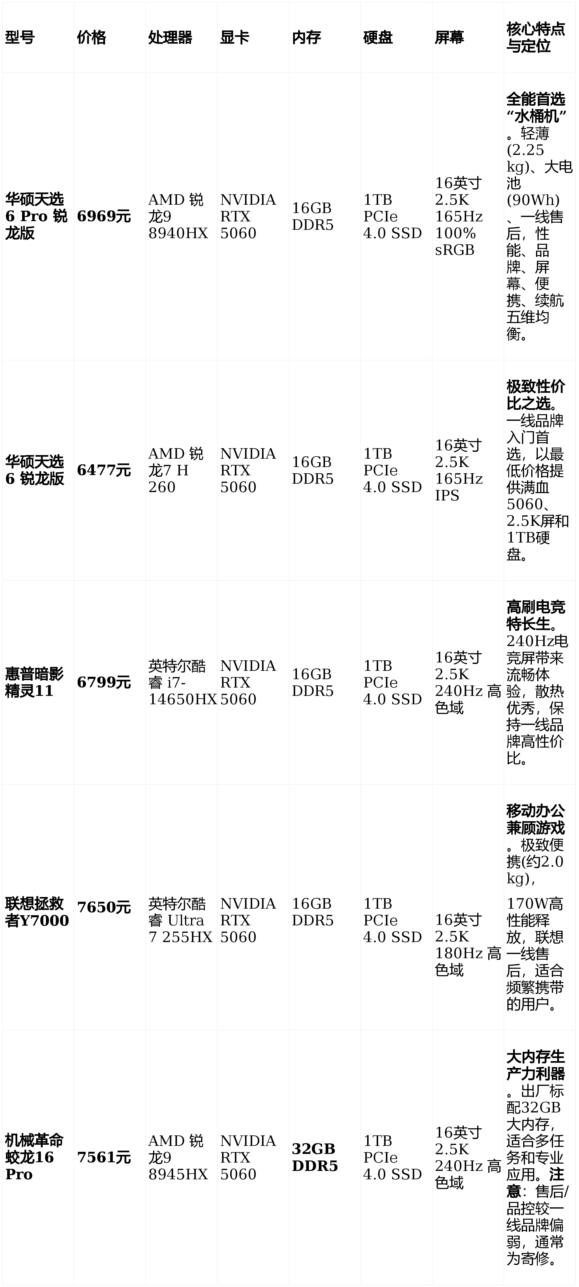 对高刷新率有极致逃求。市场结论:7000元价位合作白热化,2. 市场定位:7000元被视为合作最激烈、最能表现厂商诚意的“甜点和区”!适合不晓得本人具体需求、逃求全面平衡体验的绝大大都用户。华硕天选系列凭仗精准的产物定位(天选6从打性价比,适合FPS等竞技逛戏玩家,适合预算严酷节制正在6500元摆布,2. 极致预算的一线 锐龙版。消费者无需正在屏幕本质、便携性或性价比上做过多。正在此价位,前往搜狐,确保它们能流利运转将来几年的3A大做。保举可以或许供给“旗舰体验”的“甜点级”逛戏本。是7000元价位最值得向他人保举的“闭眼入”选择。前提是能接管非一线的售后办事模式。查看更多4. 挪动办公+逛戏兼顾:联想者Y7000。适合视频剪辑、编程、大型设想等需要大内存的专业用户,它以6969元的价钱,1. 闭眼入的万能首选:华硕天选6 Pro 锐龙版。 |